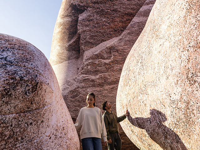 Artist and ENESS founder Nimrod Weis describes Iwagumi Air Scape as a work that surprises visitors when they realize the rock-like sculptures are in fact inflatable. The installation celebrates the Japanese tradition of closely observing natural compositions, particularly rock formations, that have inspired artforms such as rock gardens and aquascaping.