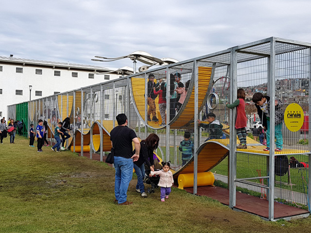 A new urban playground in Valparaíso, Chile, has captured the attention of children of all ages with a colourful 40 metre metallic structure that provides places for the kids to run, jump, hide and slide.