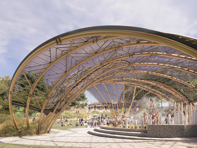 The venue, designed by MGS Architects with landscaping by Simone Bliss Landscape Architects, will be a community-led space for live music, community events, creatively ambitious performances, markets and cultural ceremonies.