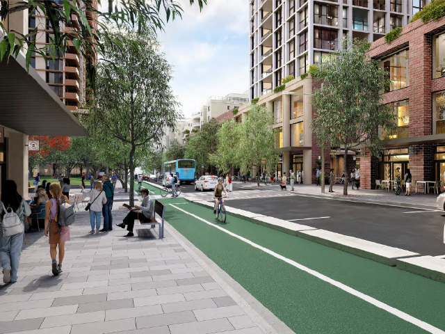- Rawson Street A high street destination with cafés, restaurants and retail shops, prioritising pedestrian safety through widened footpaths, dedicated bike lanes, street tree planting and improving traffic conditions along Rawson Street.