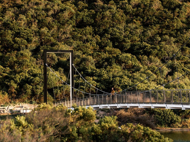 The first of the three projects in Stage 1 of the Shipwreck Coast Masterplan, the Port Campbell Creek Suspension Bridge connects Port Campbell to the national park. The bridge spans 60-metres across Campbells Creek, providing year-round access between Port Campbell and the coastal discovery walk in the Port Campbell National Park. The bridge design and materials were chosen in harmony with the surrounding landscape and the historical swing bridge that once stood in its place.