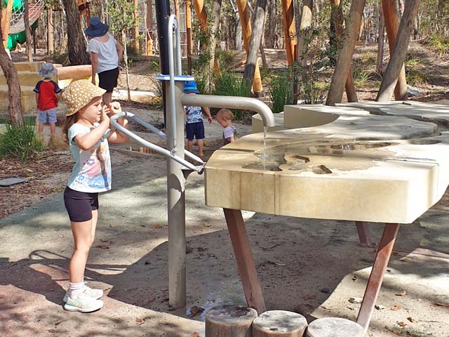Stainless-steel sluice gates and puddle plugs add extra activities into water courses, while stainless steel water troughs can be made to tip or include built in accessories such as water wheels and gates. Round basins and whirling water bowls are also available. For a more natural feel, carved ironbark timber water channels feature inlaid river rocks.