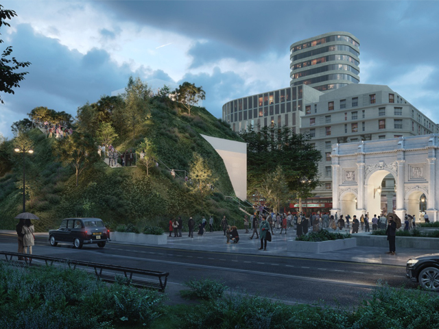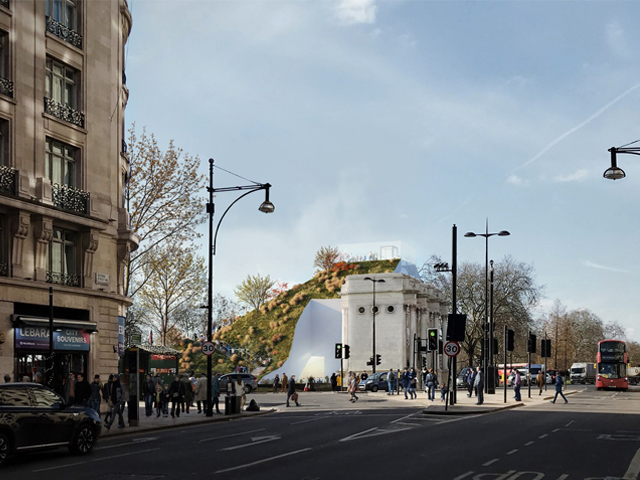 “This project is a wonderful opportunity to give an impulse to a highly recognizable location in London”, says MVRDV founding partner Winy Maas. “It’s a location full of contradictions, and our design highlights that. By adding this landscape element, we make a comment on the urban layout of the Marble Arch, and by looking to the site’s history, we make a comment on the area’s future. We enlarge the park and lift it at the corner. Marble Arch Hill strengthens the connection between Oxford Street and the park via the Marble Arch. Can this temporary addition help inspire the city to undo the mistakes of the 1960s, and repair that connection?”