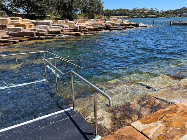 - A new non-slip platform, integrated sandstone stairs, handrails and a ladder for easier access in and out of the water