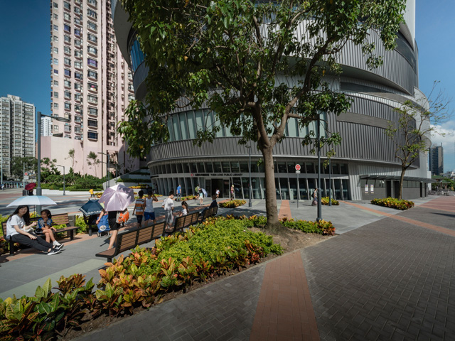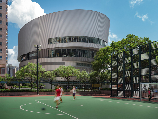 Described by the architects as, “Located along the main pedestrian promenade connecting cultural and educational facilities with Yuen Long Park and surrounded by residential developments, the new building is conceived to be of complementary nature - yet, a contribution of stimulating contemporary civic architecture with a distinguished new silhouette and a landmark in the neighborhood.”