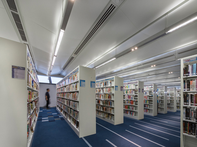 Yuen Long District Library and Indoor Recreation Center combine two floors of children's and adult lending library with two floors of indoor recreational facilities like table tennis, gym, multi-functional fitness rooms, and a double basketball and badminton sports hall. With 1500 seats for spectators it can host citywide tournaments. These rather contradictory functions are separated by a book reserve storage facility on the intermediate floor.