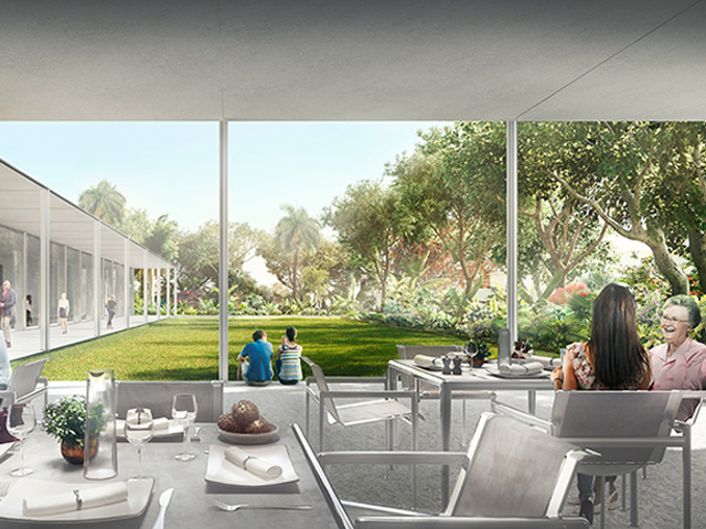 Foster + Partners’ plan seeks to re-engage with Wyeth’s original vision and bring beauty and symmetry back to the museum. The museum is being gradually reconstructed and its centrepiece will be the surrounding subtropical garden. The garden is to create an extension of the museum and provide a set of “outdoor galleries” that feature sculptures and natural landscaping.
