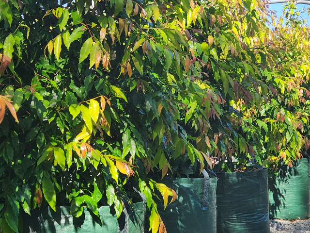 Combine foliage interest with functionality and you can’t go past Acacia cognata varieties ‘Burgundy Cascade’, ‘Copper Tips’ and ‘Lime Magik’. These grow roughly to the same dimensions - around 4m tall and 3m wide - and all are naturally pendulous in form with foliage colour variations to suit any landscape palette.