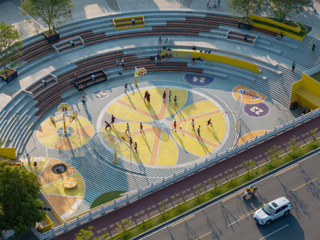 Now, the sinking space is not a simple underpass place, but a diverse and inclusive space based on street basketball games, fun shooting, and children playing.