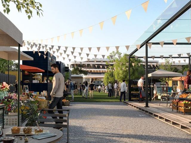 Cox Place | Cox Place will be the vibrant village heart of Moonee Valley Park. Paved with possibility day and night, Cox Place will provide access to shopping, dining, work and wellness. The community can gather, linger, dine, work and celebrate in this civic heart.