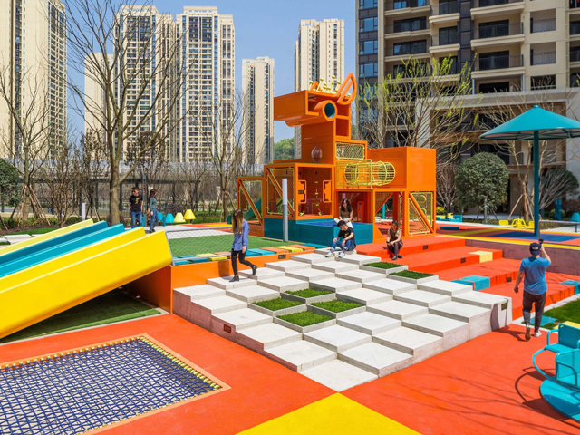 Playful features are scattered through, including a three-dimensional horse-themed playground in the centre of the plaza for kids to enjoy.