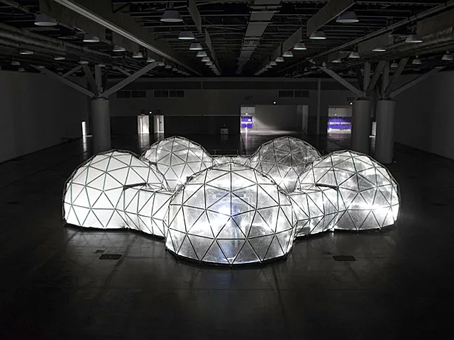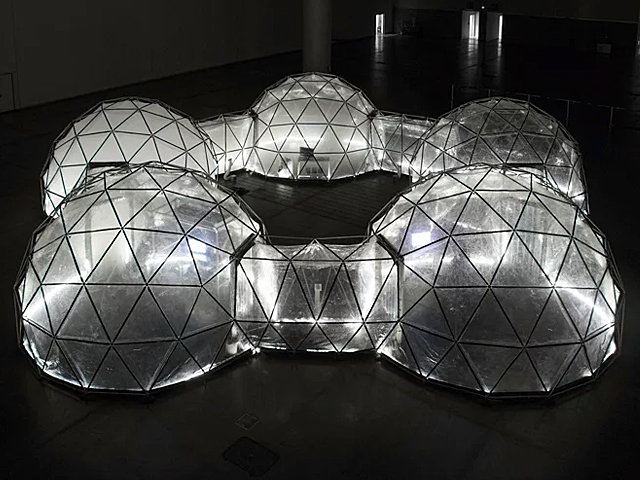 Each of the five geodesic domes connected has their own cocktail of fumes, as does each of our cities. Carbon dioxide, nitric dioxide and harmful chemicals are the invisible killers that blanket our skyscrapers and lungs, but here in this safe simulation by Michael Pinsky, there’s none of that. No romantic architecture. No people to watch or platforms to run to — only the twisted smell and harmful haze city-dwellers have grown accustomed to.