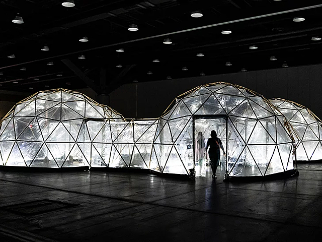 An installation of ‘pollution pods’ in Vancouver encourages visitors to immerse themselves in domes that mimic the smog of five different cities, demonstrating the toxic implications pollution has on liveability.
