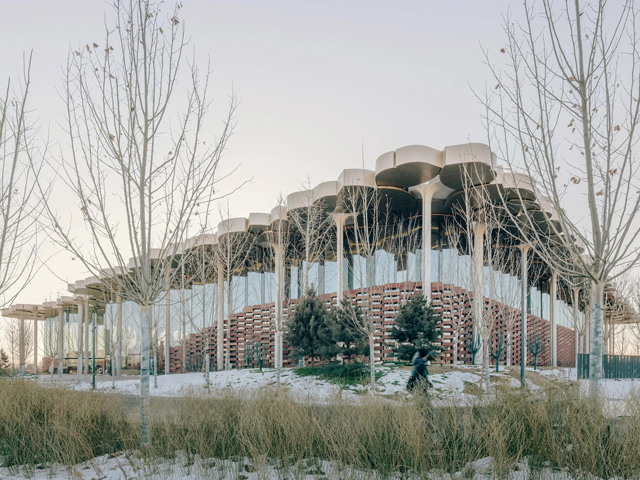 Located inthe Beijing's Tongzhou district, the Beijing City Library was designed by Snøhetta to emulate natural landscapes and prioritises helping visitors connect to the outside, enticing them away from their screens. "The terraced landscape and tree-like columns invite visitors to lift their gaze and focus at a distance, taking in the bigger picture," said Snøhetta partner Robert Greenwood.