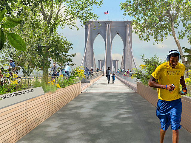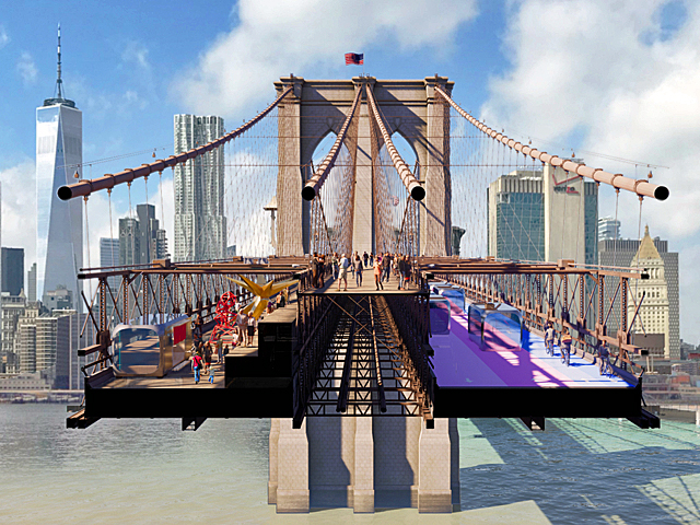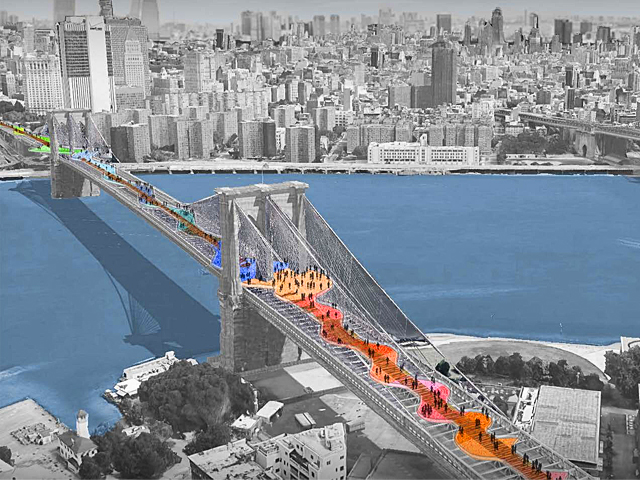 A symbol for the city itself, the bridge is crossed by thousands of pedestrians and cyclists every day, and can become crammed, uncomfortable and sometimes unsafe. In response to these conditions, the New York City Council and Van Alen Institute “launched the international design competition that aims to spark a new public conversation about New York City’s infrastructure”.