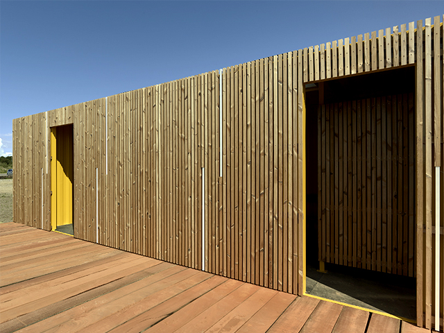 As a continuous theme, Sweco Architects’ “Water Sports Centre Halsskov” project recycles as many materials as possible from the former port, either directly or through upcycling. The precinct’s boundaries and benches consist of the former bulwarks from the ferry port, while new wooden decks consist of sawn bulwark. The facility buildings, also built by containers, are covered with heat-treated wood from sustainable forestry that ensures minimal maintenance. On the energy-related side of the project, LED lighting is used to minimise total consumption.