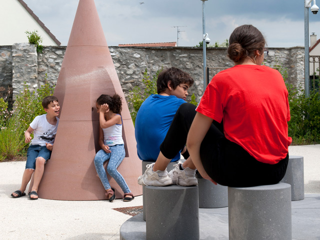 Located in La Passerelle in the district of Roissy-en-France, the playground features three elements – the Ventriloquist's Throne, the Pink Cockpit and the Council Seats.