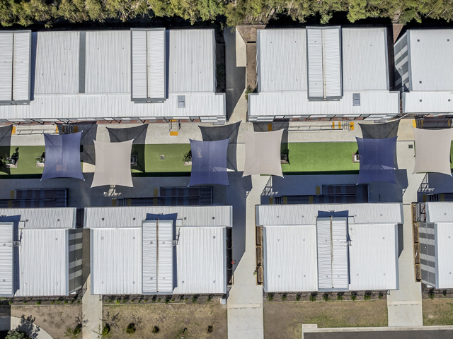 For several summers, the narrow outdoor space between the school’s portable classrooms offered no protection from the sun, limiting its use by students and staff. In response to growing concerns, the school approached Shade 'N' Sails to develop a shade solution that would not only be effective but also suit the constraints of the site.