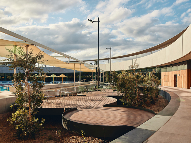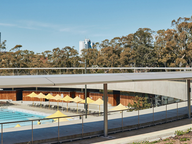 The venue, which opened in September 2023, was designed by Andrew Burges Architects, Grimshaw Architects and McGregor Coxall. Not only a place to relax and cool off in the summer months, the PAC provides a range of health and wellness offerings all year round. The design of the aquatic leisure centre, which was informed by extensive community consultation, features a 10-lane 50m outdoor pool, 25m indoor pool, learn-to-swim facilities, café and fitness centre.