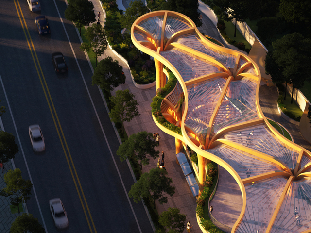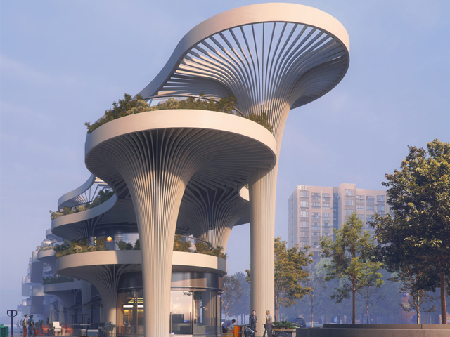 Located in the Minhang district, the project is part of the new Shanghai Tian An Caobao Road Area Residential Masterplan and, once completed, will serve as a gateway for the development. The project adheres to the goal of transforming one of the world's most polluted cities into a healthier and more liveable urban environment. As the team suggests, the idea of a forest within the urban setting is also a reference to China's commitment to becoming carbon neutral by 2060.
