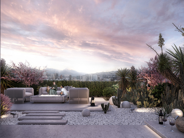 Quito-based odD+ Architects came up with the designs for the skyscraper. Taking cues from the rhythmic formations of a sunflower’s seeds and petals, the tower is a direct response to the increasing urbanisation of Quito. Aiming to address development patterns that threaten the natural landscape and its endemic species, the project was made to be a vertical ecosystem for the city.