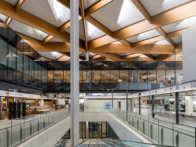 Retail, tourism, and wholesale operations now sit under one roof. Visitors can watch auctions in a modern Dutch-style system with up to 160 buyers competing at once. Large screens display prices and volumes and glazing along promenades allows the public to see into the normally hidden world of seafood trading.