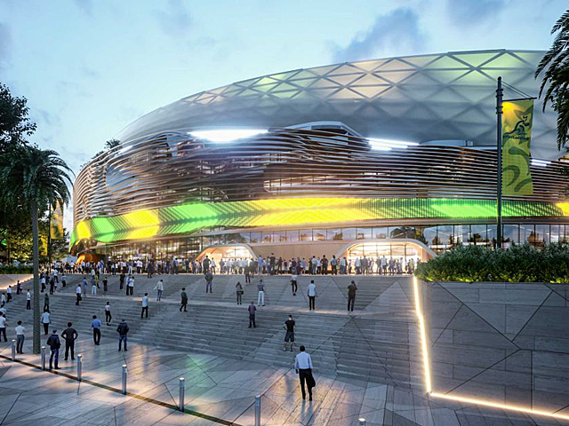 Sports Minister Stuart Ayres says the design will create “a colosseum of sound and colour” that will “set the standard for rectangular stadiums in Australia”.