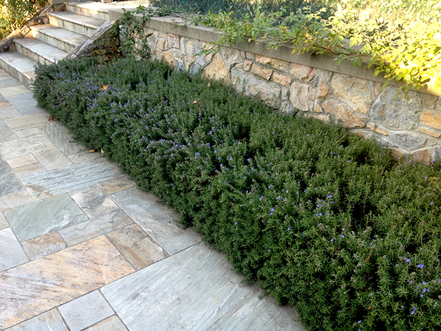An evergreen, low growing shrub with an abundance of purple-blue flowers in summer. The highly aromatic silver-green foliage attractively cascades over the pot edge and can be clipped or close planted for a great low hedge or border.