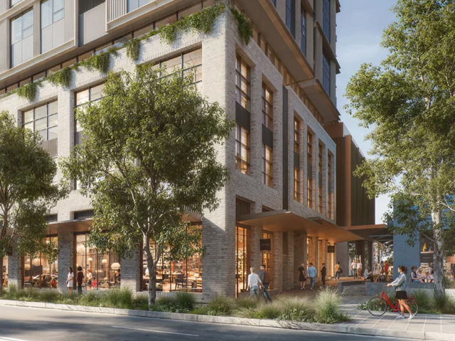 Originally approved in 2019 for a mix of office and residential buildings, the northern precinct was later amended in 2021 to accommodate a large commercial office tower. However, as demand for city-fringe office space fell post-pandemic, plans for the precinct were reconsidered. The proposed buildings will be constructed above a four-storey podium that wraps around the Metro station. Designed by Woods Bagot, the towers are setback above the podium to reduce visual bulk and maintain solar access at street level. The design references Waterloo’s industrial past, using brick textures and articulated façades to create a contextual yet contemporary identity. The towers aim to provide a “landmark urban form” without dominating surrounding streetscapes.