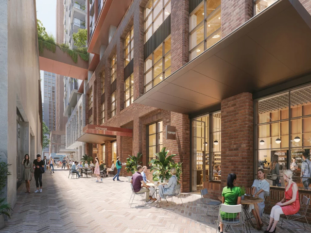 Plans are on display for a mixed-use precinct focused around Waterloo Metro Station. A John Holland and Mirvac joint venture, the State Significant Development includes two $185-million towers, featuring residential and commercial spaces, a new public pedestrian link and upgraded landscaping. The site, part of the broader Waterloo Metro Quarter (WMQ), sits directly above the recently opened Metro station and forms the northernmost section of the over-station precinct.