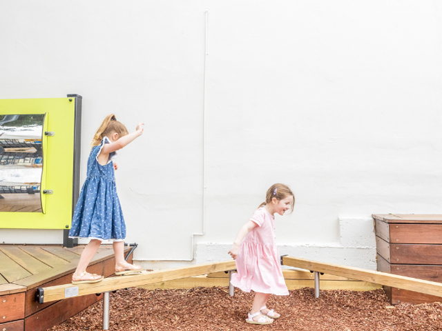 Toddlers discover the world through touch, sight, sound and movement. Bright colours, interesting textures and playful sounds turn every corner of a playground into an invitation to explore. Gentle movement experiences - like balance beams, low steps, and little swings - help children find their balance, build coordination and understand space, all while having fun and feeling confident in their bodies.