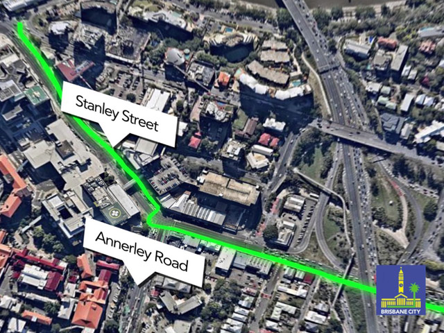 The project extends 1.1 kilometres along Stanley Street between Ipswich Road, Woolloongabba and Dock Street, South Brisbane, and 1.4 kilometres along Annerley Road between Stanley Street, Woolloongabba and Gladstone Road, Dutton Park.
