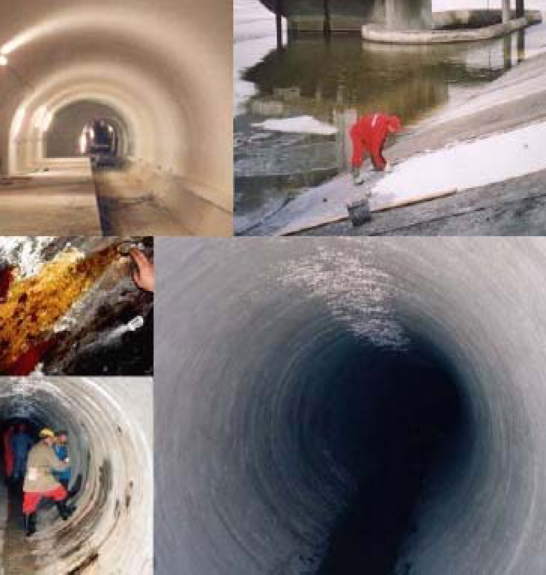 • Waterproofing and protection of concrete in water treatment plants, settling tanks, etc