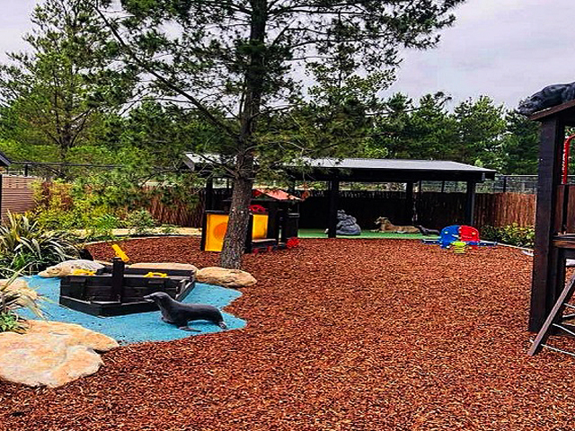 Thanks to Rosehill TPV surfacing from Surface Designs, installed by Bruce’s Playgrounds, the parents can relax as the kids run wild in this fun, nature-themed space.