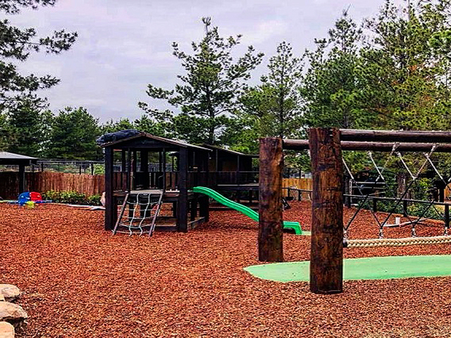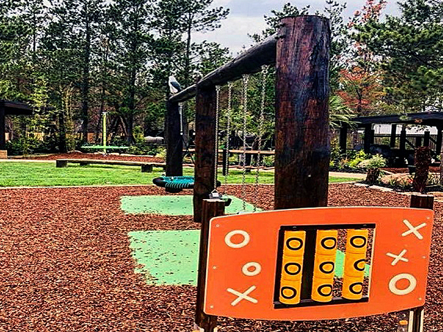 Featuring timber play equipment, swings and even giant animal installations, this playground delights and ignites the imagination.