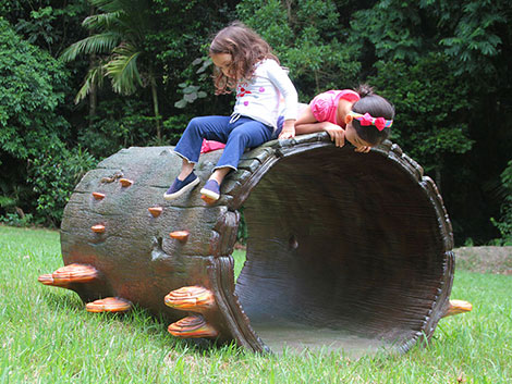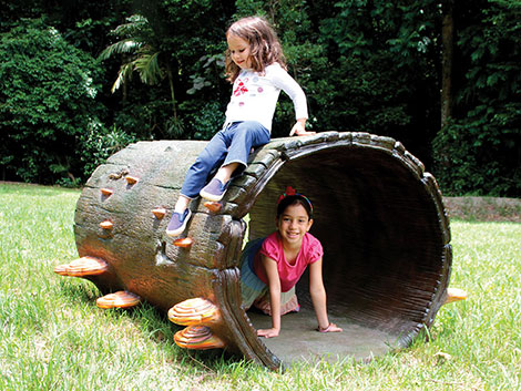 This unique play item features glowing orange bracket fungi, two geckos, two snails and lots of green moss – just like a real hollow log in the forest.
