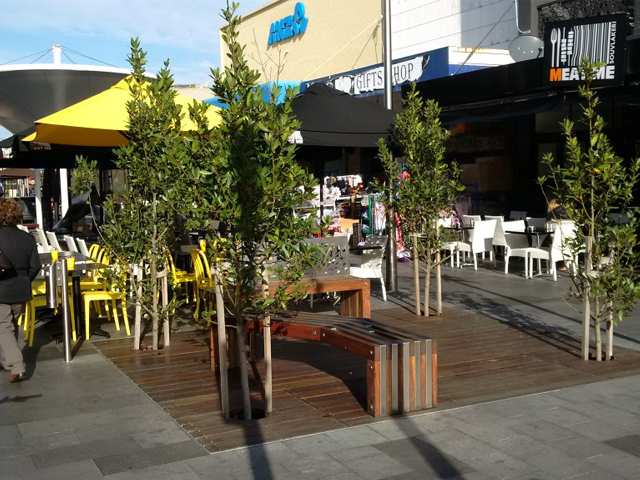Third, the system was able to integrate with the council’s water sensitive urban design. “All the street trees are rain and stormwater fed. Water has been harvested for reuse from the street, overhead canopies and large shade structures,” Makaay said.