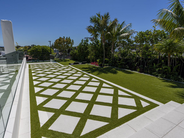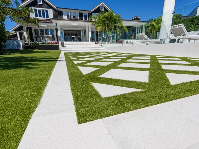 Spearheaded by New Zealand-based APT Agent, Teamturf, the project aimed not only to create a luxurious backyard but also to fashion a setting worthy of a high-end designer label photoshoot for the customer’s successful fashion label. Utilising the SYNLawn Esplanade 40 for the large 210 sqm area along with large stone pavers on one side, Teamturf was able to deliver an exceptional finish that captures the customer’s vision for a seamless fusion of luxury and practicality.