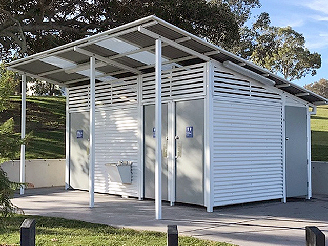 It was time for the old brick restroom to make way for a bright, new, ventilated, easily-cleaned upg...