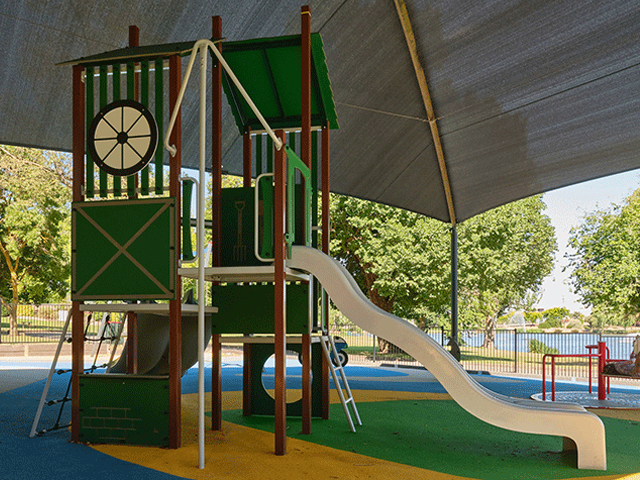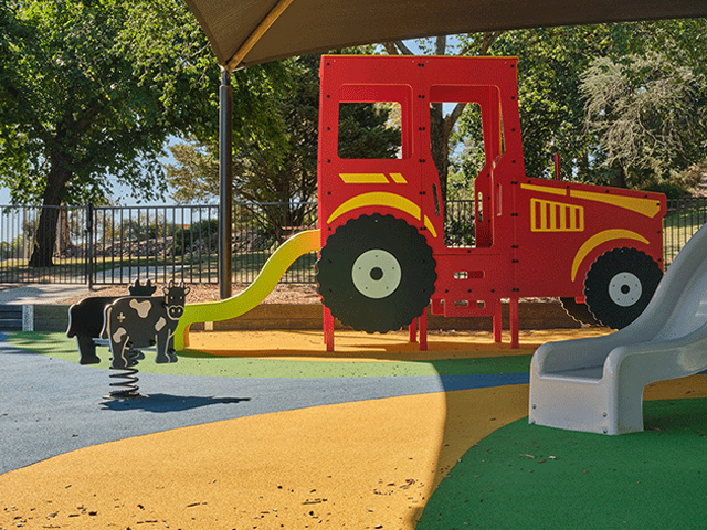 Ararat Rural City Council engaged adventure+ to redevelop the Alexandra Gardens playground, resulting in an engaging play space. Large enough to enable multiple children to play simultaneously, coupled with a wide range of different play activities, it has become a popular gathering place for the local community.