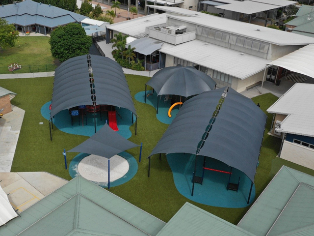 Rainbow Shade supplied Z16 Shade Fabric for Genesis Christian College, where four shade structures w...