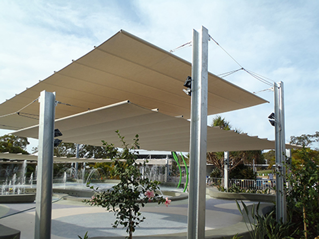 The upgraded Gladstone Aquatic Centre features an outdoor 50m Olympic swimming pool, a 25m indoor heated pool and a water play park, and attracts people of all ages who wish to escape the heat and relax. However the extreme UV rays creates a real risk of skin damage from the sun. The solution was to provide flexible and adaptable shading in the form of five retractable Shaderunners®, creating the ideal outdoor environment.