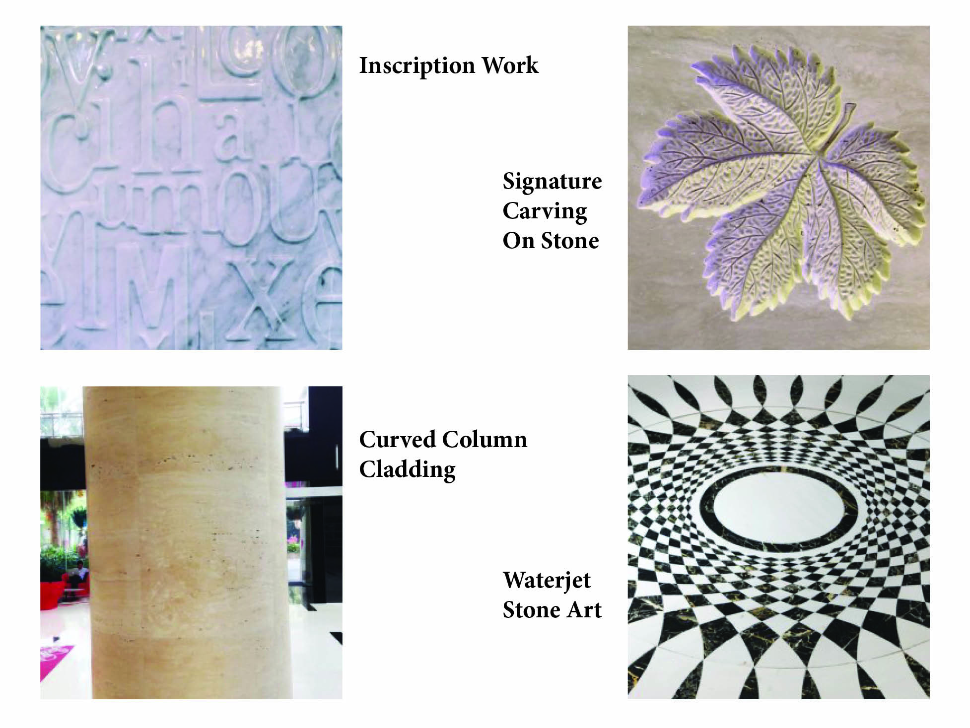Waterjet Stone Art | Achieved by using a computerized water jet to create precisely cut edges and then assembled accordingly. Can be used to create a number of brilliant and original designs that will flatter and bedazzle.