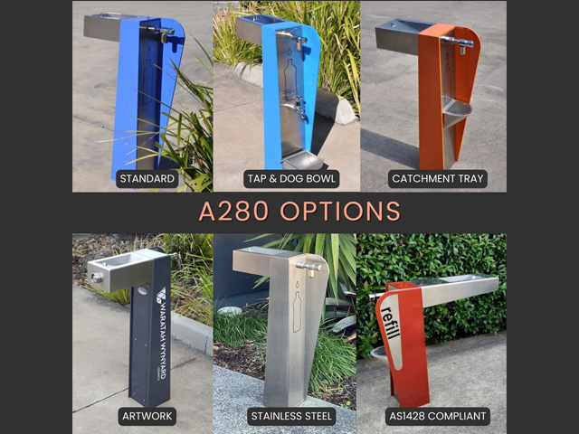 What truly sets the A280 apart is its adaptability. The A280 is available in a range of configurations to suit diverse needs and optional extras include Tap & Dog Bowl, Catchment Tray, Maintenance Tap and a AS1428 compliant version with a longer basin. Further customisation options include custom artwork, anti-graffiti coatings and a choice of over 100+ powder-coated finishes. There is also the option for a full stainless-steel design, ensuring the A280 not only meets functional requirements but integrates into harsh environments.
