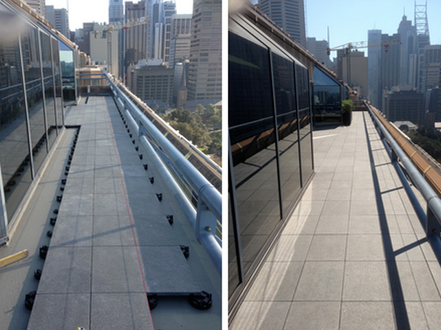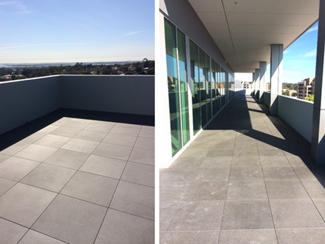 Porcelain pavers supported on VersiPave, are ideal for use over waterproof membranes. These exceptionally strong, 20mm thick 600x600, non- porous pavers are available in a huge range of styles. They require no sealant or maintenance, are slip, stain and scratch resistant, fade proof, and when installed on VersiPave, they require no adhesive or grout, making them easy to install and remove.