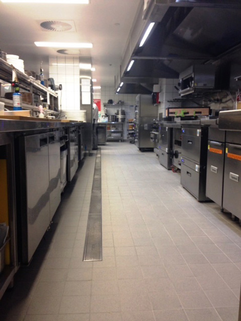Hydro also supplied our LS1000/60 from our solution range into the commercial kitchen, along with custom made basket wastes to suit. This is a classic example of the versatility of the solution range, and a great case study for the use of polymer concrete channel in a kitchen/food handling area. When installed correctly, polymer concrete provides a cost effective, non-porous alternative to a full stainless steel product.