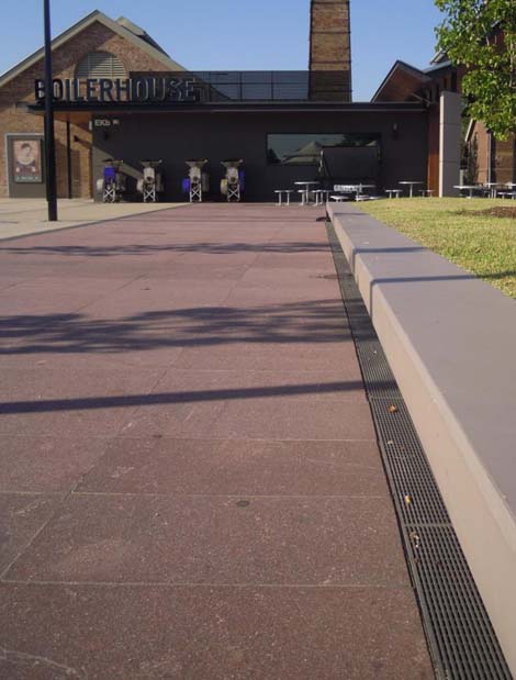 Designers transformed the sandstone brick building into a well-designed common area to integrate all student related activities. The plaza is constantly filled with people and so the walking surface, including the drainage grates, was evaluated for safety.