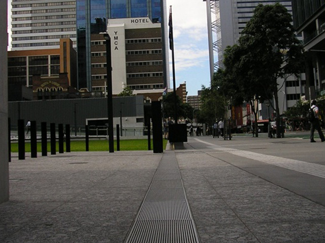 ACO’s KlassikDrain & SlabDrain were specified with Heelsafe® Anti-Slip grates. These visually continuous runs joined the wide footpaths of George St to the public square area. The grates ensured women’s heels would not be trapped and provided a level of slip resistance.