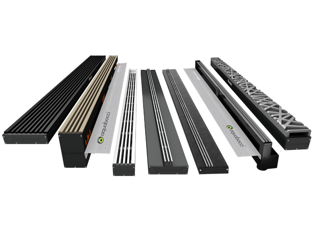 The R-47 is now available with the Aquabocci Blade Grate Design. The all new R-47 x Blade Threshold Drain gives customers the option of having a minimal blade grate design against a door profile. The aluminium blade grate is available to order in the same colour as any door system. A popular colour right now is Aquabocci’s ‘ Titanium ‘ also known as ‘ Anthracite grey ‘.